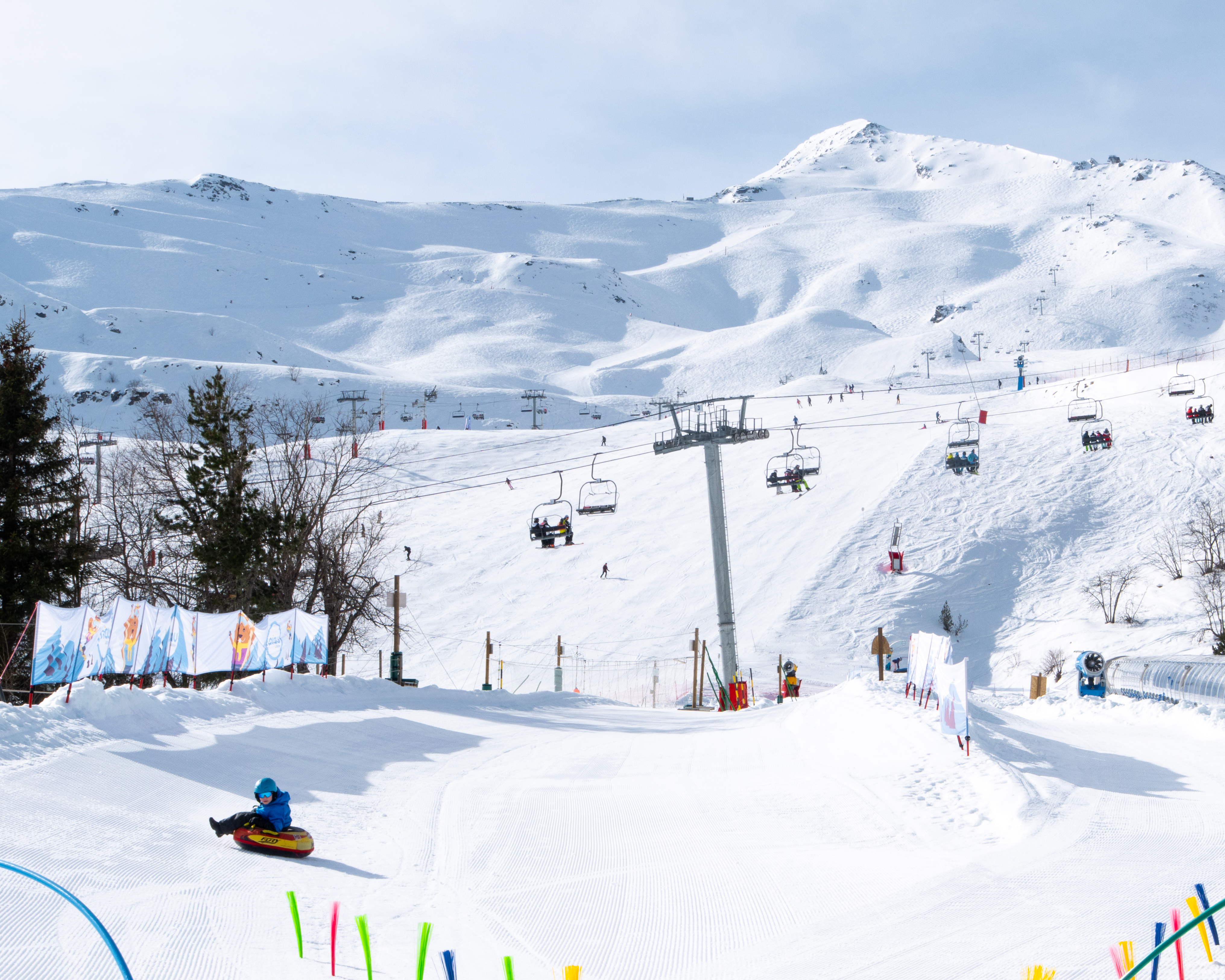 Installez-vous dans une bouée de snowtubing et laissez-vous entraîner dans une descente ludique, tout en douceur ou à toute vitesse selon votre humeur. Après chaque glissade, les visiteurs remontent à pied sur le tapis école, leur bouée à la main : un embarquement facile et fluide qui permet d’enchaîner les descentes à volonté.